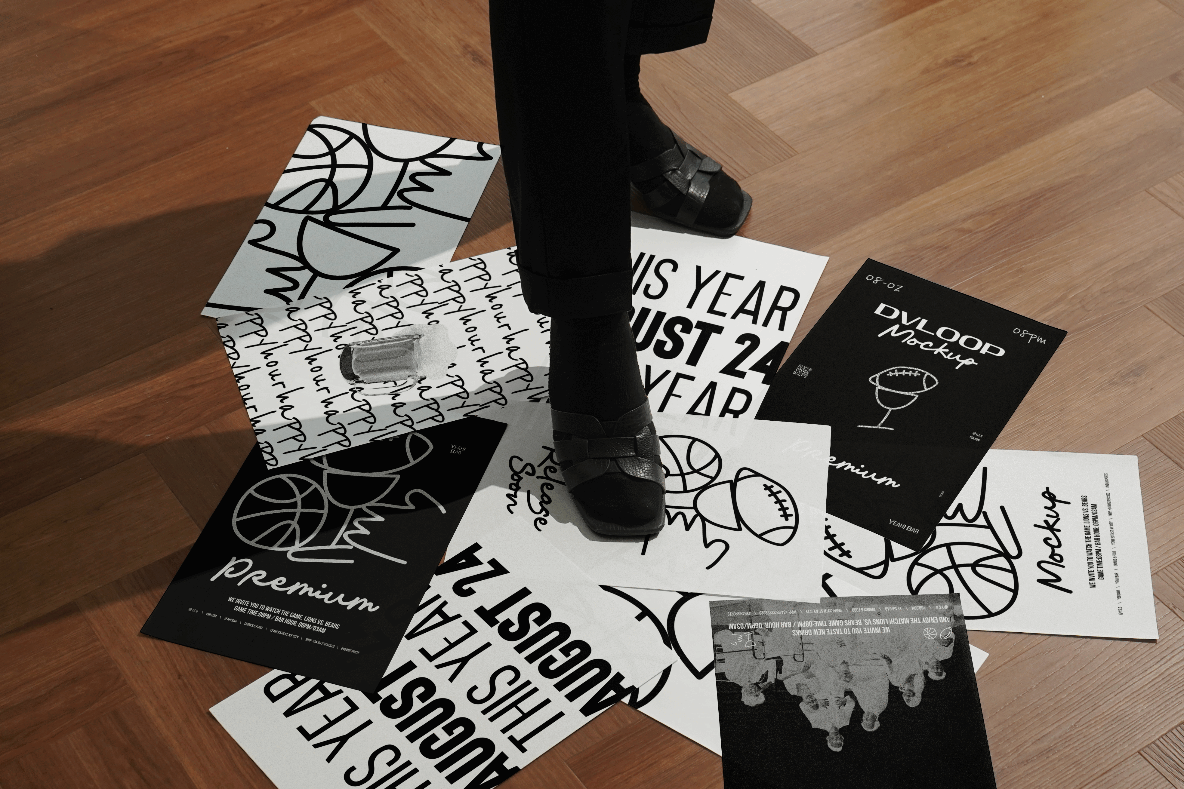 5 Posters On The Floor DVLOOP Mockup Collection